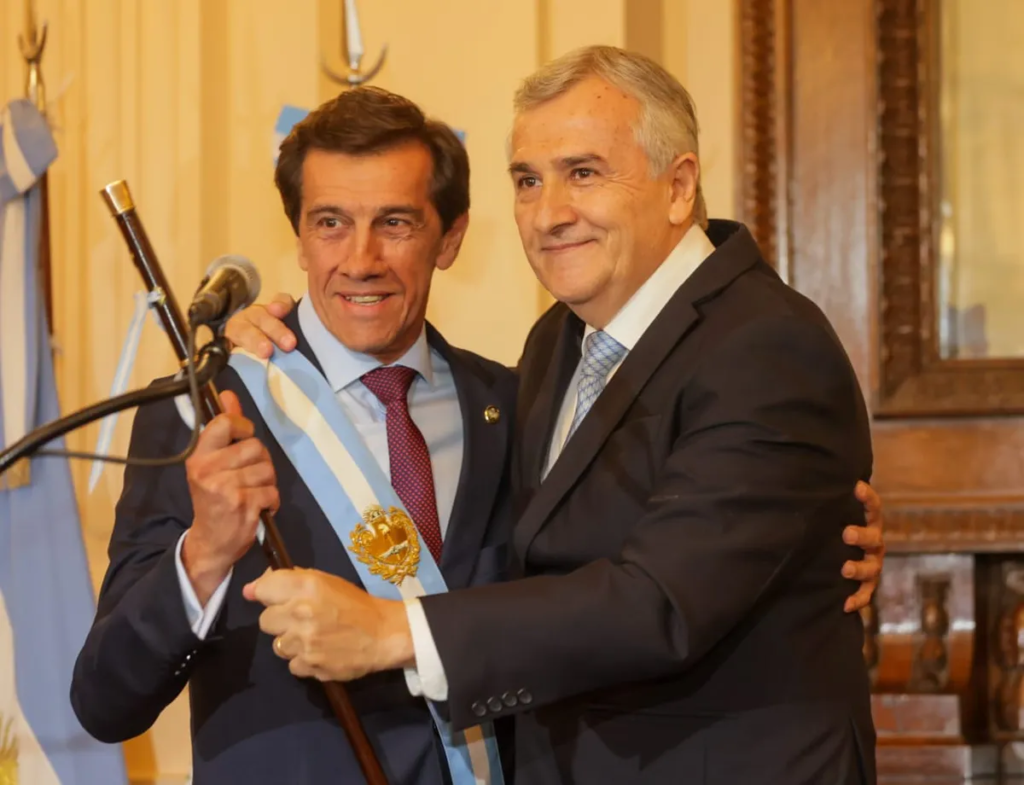 El gobernador de la Provincia, Carlos Alberto Sadir, recibió del mandatario saliente, Gerardo Morales, la banda y el bastón de mando, en acto celebrado en el Salón de la Bandera, en cuyo marco también juraron los ministros del gabinete provincial.