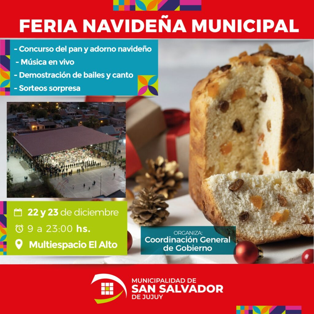 La Coordinación General de Gobierno anunció la realización de la Feria Navideña Municipal, un evento lleno de alegría y tradición que se llevará a cabo los días 22 y 23 de diciembre en el Multiespacio “El Alto”, ubicado en Alto Comedero.