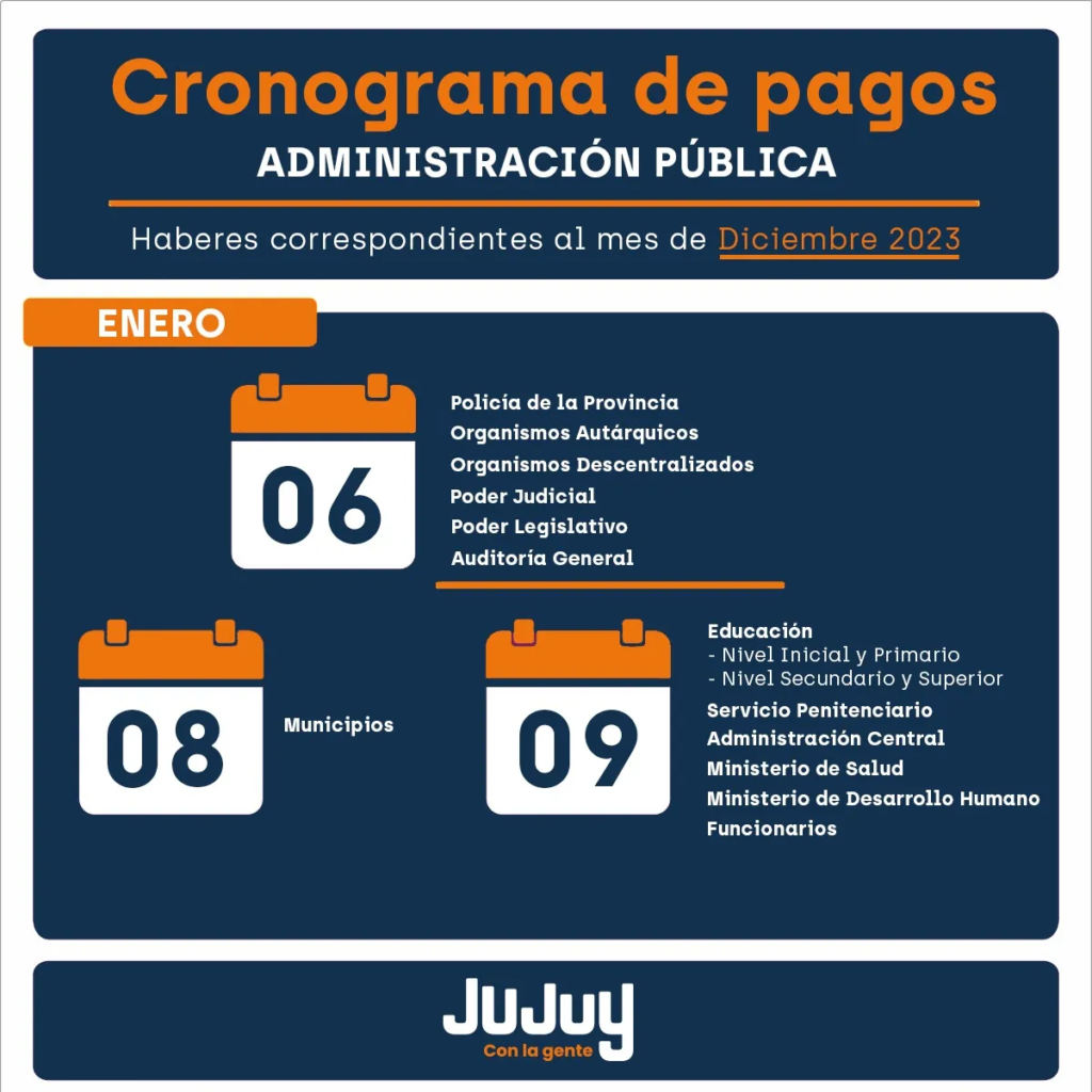 El jueves 5 de enero percibirán haberes, Policía de la Provincia, Organismos Autárquicos, Organismos Descentralizados, Poder Judicial, Poder Legislativo y Auditoria General.