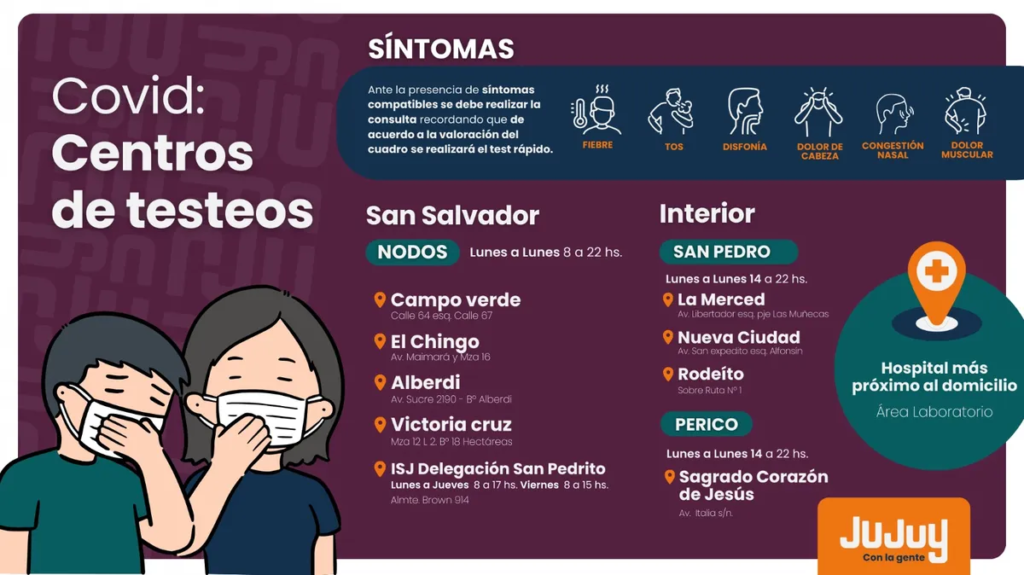 El Ministerio de Salud de Jujuy recordó a la población que los servicios gratuitos de testeo y vacunación frente a Covid-19 se encuentran a disposición en todo el territorio provincial, siendo claves para contener la posibilidad de casos.