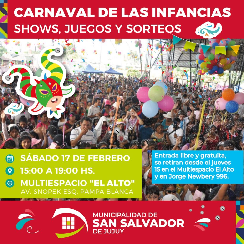 El próximo sábado 17 de febrero, el Multiespacio El Alto del barrio Alto Comedero será el escenario de una jornada llena de alegría y diversión con la llegada del Carnaval de las Infancias, evento organizado por la Municipalidad de San Salvador de Jujuy a través de la Secretaría de Desarrollo Humano.
