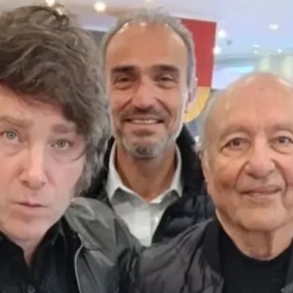 Javier Milei y Eduardo Menem, hermano del ex presidente. Más atrás, "Lule", nuevo integrante de la Secretaría General de la Presidencia.