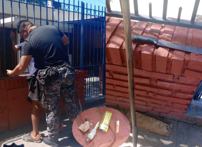 Personal del Cuerpo de Infantería en el momento de la demora, este individuo transportaba un machete, una pala y elementos para consumos de sustancias prohibidas, seguidamente fue trasladado a la dependencia policial quedando a disposición de la justicia.