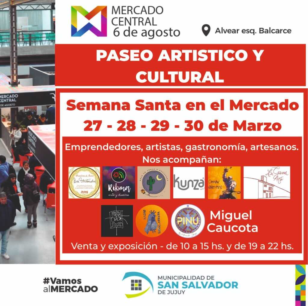 La Municipalidad de San Salvador de Jujuy invitó a disfrutar de un Paseo Artístico y Cultural en el emblemático Mercado Municipal Central 6 de Agosto, ubicado en la intersección de Alvear y Balcarce.