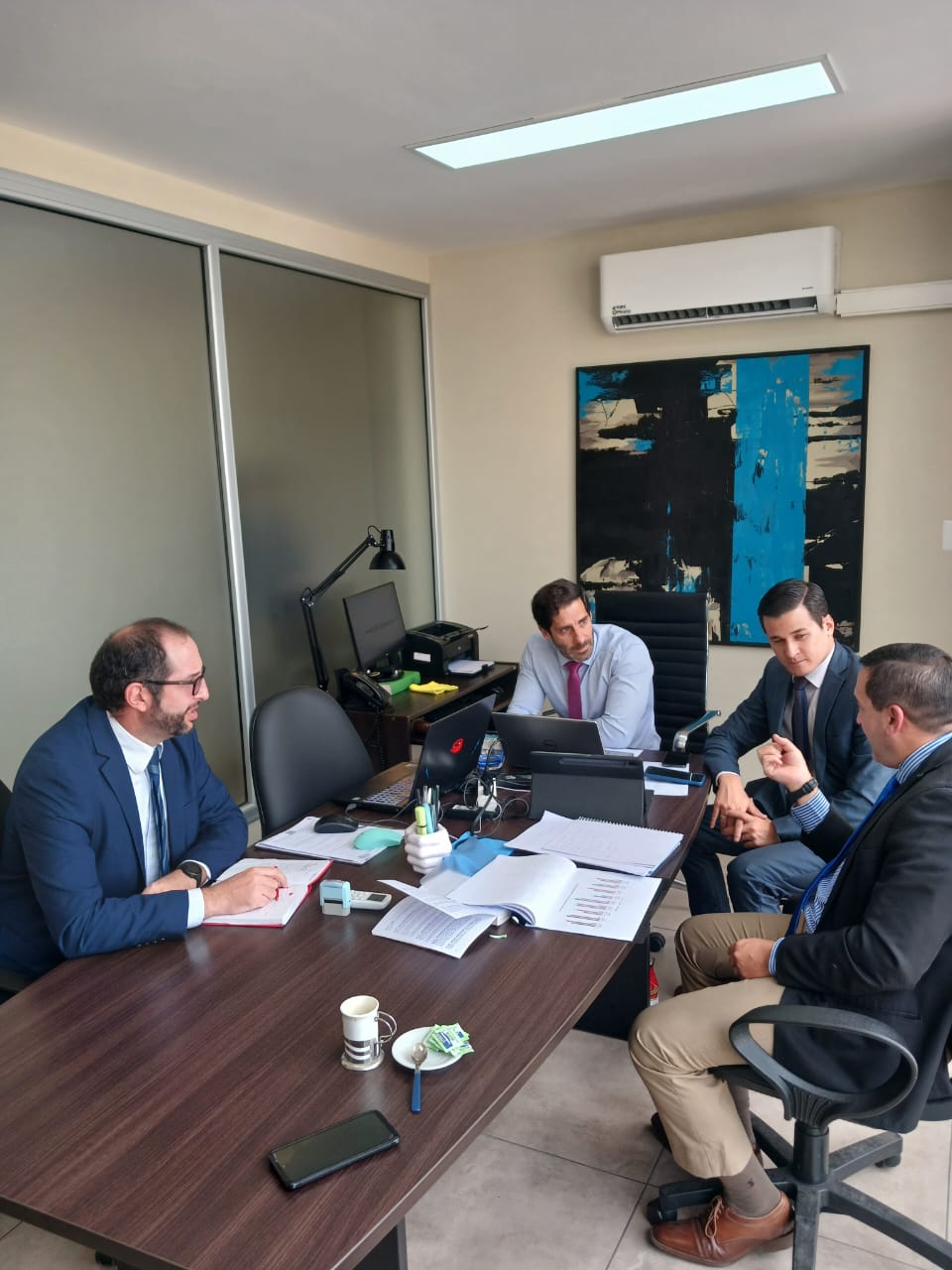 El Director de la OGJ local, Dr. Nicolás Besin Calderari, y el Lic. Santiago Riba, Jefe del Departamento de Procesos, Estadísticas y Mejora Continua, mantuvieron una extensa reunión de trabajo con los Dres. Jorge Sosa Vallejo y Enrique Cornejo Costas, quienes se encuentran a cargo del diseño e implementación de la Oficina de Gestión Judicial de Salta.