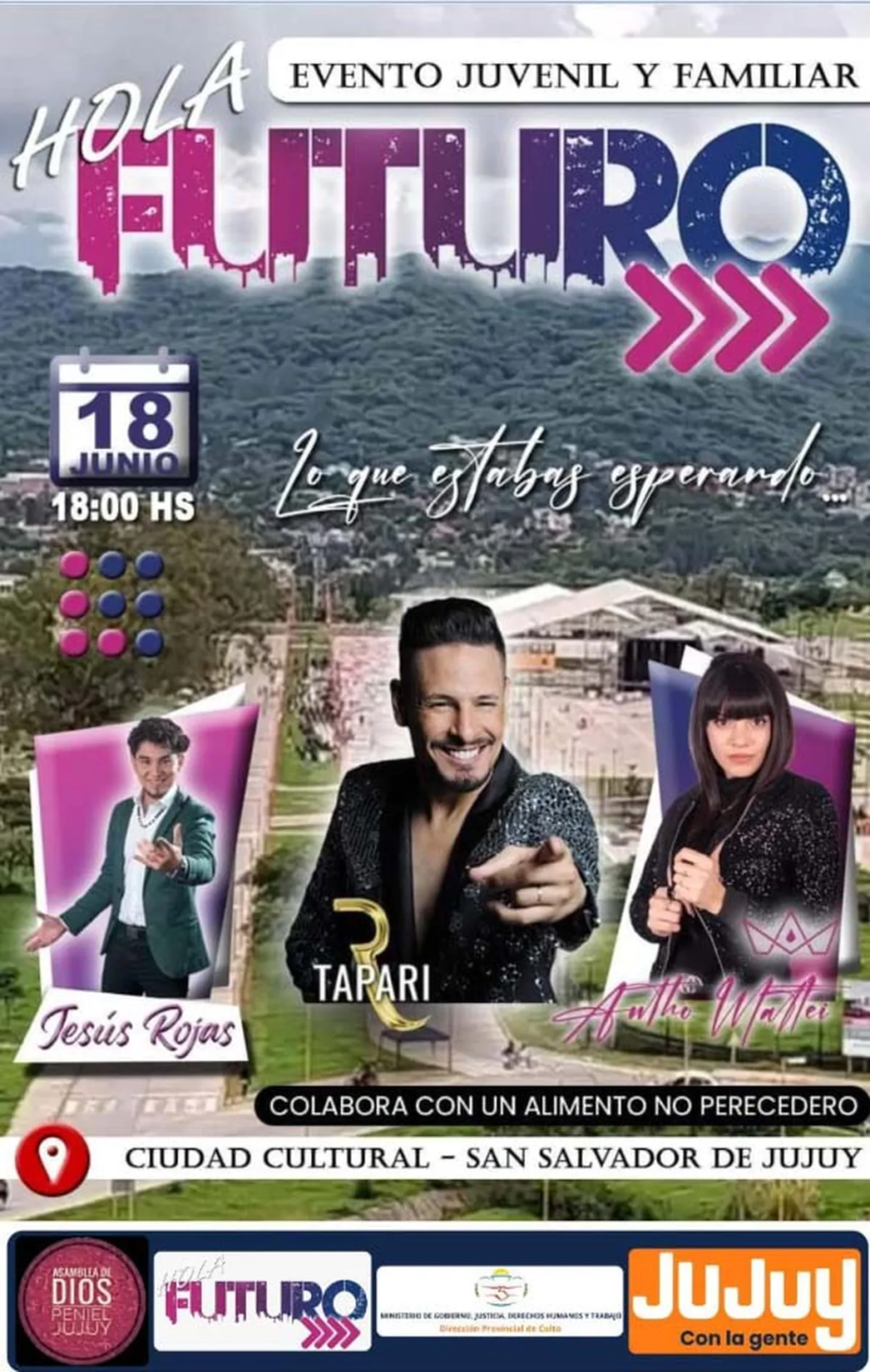 Organizado por el Gobierno de la Provincia y la Iglesia Asamblea de Dios Peniel, se desarrollará el encuentro juvenil y familiar «Hola Futuro», programado para este 18 de junio de 16 a 20:30 horas en el predio de Ciudad Cultural.