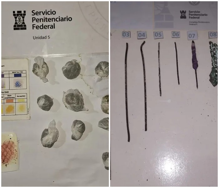“En total se secuestraron 29 celulares, cuatro tarjetas SIM, nueve tarjetas de memoria, 12 cables USB, 19 cargadores de celular, ocho auriculares, un pendrive, un módem de internet portátil, 40 objetos corto-punzantes, ocho elementos contundentes, más de 150 gramos de cocaína y marihuana y 57 pastillas de éxtasis”, detallaron las fuentes del caso.
