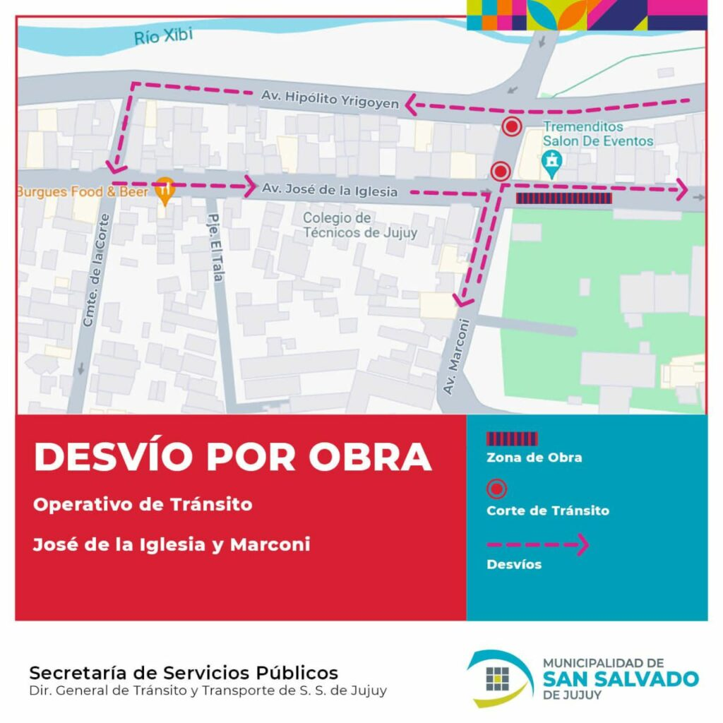 La Secretaría de Servicios Públicos, a través de la Dirección General de Tránsito y Transporte inició hoy lunes 22 un operativo con motivo de obras de mejoramiento vial en calle José de la Iglesia, operativo que se ampliará el martes 23 de julio.