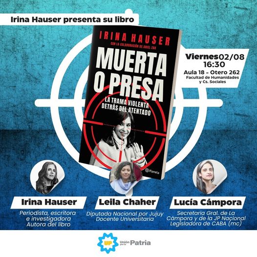 Irina Hauser llega a Jujuy de la mano de la diputada nacional Leila Chaher a presentar su libro «Muerta o Presa», el cual revela la trama alrededor del atentado a la vida de la ex presidenta de la Nación, Cristina Fernández de Kirchner.