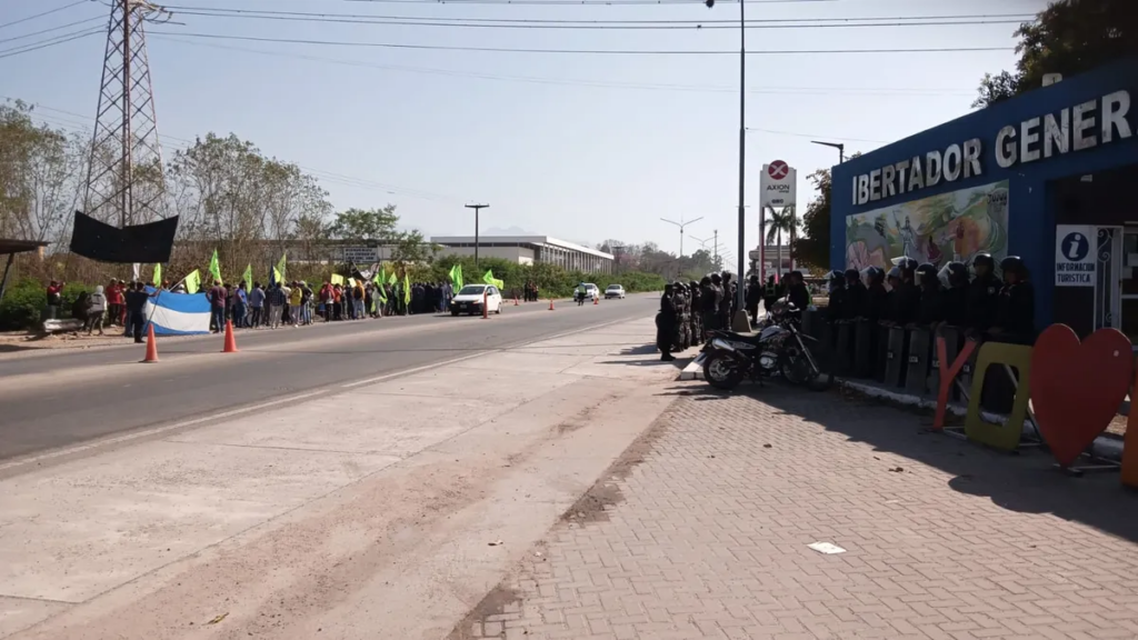 En un momento dado y desobedeciendo las disposiciones y recomendaciones del personal policial, los manifestantes abruptamente tomaron la ruta cortando el tránsito, por lo que se aplicó el protocolo respectivo para intentar hacerlos desistir de su actitud.