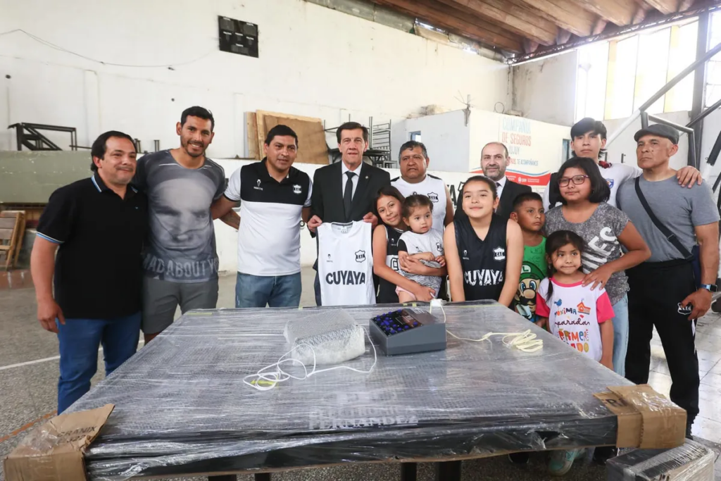 El gobernador de la Provincia, Carlos Sadir, en compañía del interventor de la Federación Jujeña de Básquet (FJB), Gustavo Lamas, hizo entrega de un tablero electrónico y relojes de posesión para la cancha de básquet del Club Atlético Cuyaya.