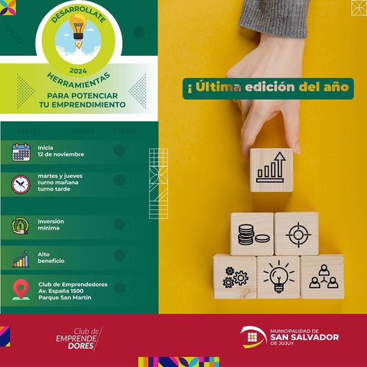 La Municipalidad de San Salvador de Jujuy lanza la última edición de su taller insignia, “Desarrollate”, un programa dedicado a emprendedores locales que buscan potenciar sus proyectos y alcanzar el éxito empresarial. Este curso es una oportunidad exclusiva para aprender a construir un modelo de negocio efectivo y adquirir herramientas clave que promuevan el crecimiento y la sostenibilidad de los emprendimientos.