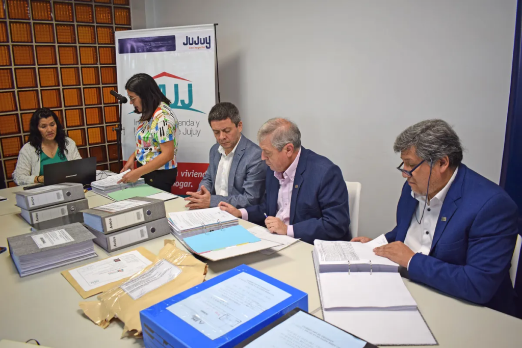 En instalaciones del Instituto de Vivienda y Urbanismo de Jujuy (IVUJ), estuvo presente el Directorio del IVUJ, integrado por su presidente, José Luis Paiquez; los vocales técnico y social, Sergio Soria y Marcelo García, respectivamente; la escribana Carla Jimena Ellemberg de Escribanía de Gobierno; Ángel Alberto Lamas y Magdalena María Rivas, en representación de Fiscalía de Estado; Cristian Ponce, a cargo de la Coordinación Jurídica del organismo; Andrea Pareja, jefa del departamento Diseño; personal del IVUJ; y representantes de las empresas oferentes.