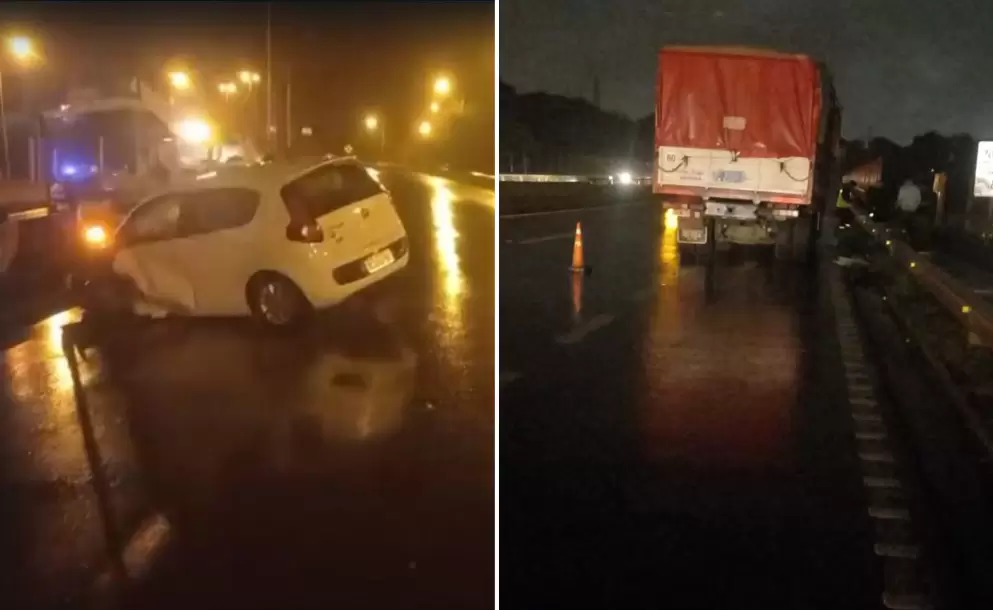 Debido a las condiciones climáticas que se presentaban en la noche del martes en San Salvador de Jujuy con una llovizna intensa, ocurrió un doble siniestro vial sobre el puente ubicado a la altura del barrio Ciudad de Nieva.
