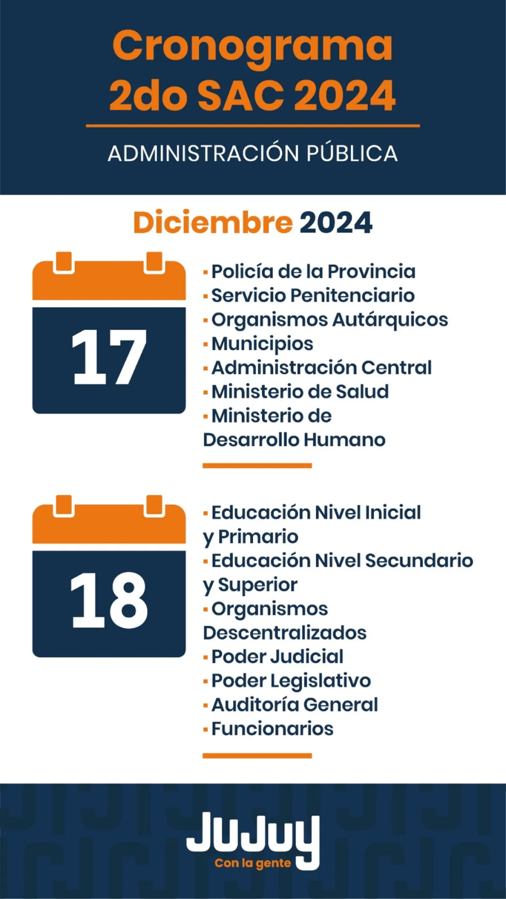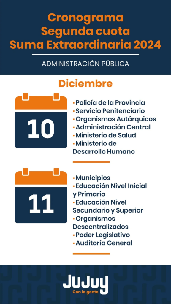 El gobernador Carlos Sadir anunció que el segundo tramo del bono extraordinario será acreditado el 10 y 11 de este mes a agentes de la Administración Pública Provincial. Con posterioridad, el 17 y 18 de diciembre se efectivizará el pago de la segunda cuota del aguinaldo 2024.