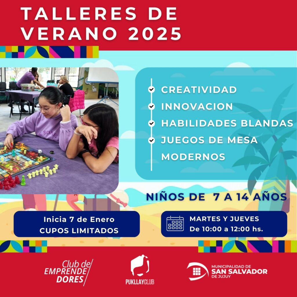 Con el objetivo de brindar entretenimiento y desarrollo a los niños de 7 a 14 años, se han iniciado los Talleres de Verano 2025 en el Club de Emprendedores de la Municipalidad de San Salvador de Jujuy, ubicado en Parque San Martín, avenida España 1500. Los talleres se enfocan en fomentar la creatividad, la innovación, el desarrollo de habilidades blandas, y la participación en juegos de mesa tradicionales y modernos.
