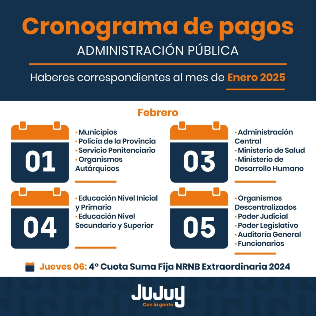 Tesorería de la Provincia anunció el cronograma de pagos, correspondiente al mes de enero de 2025.