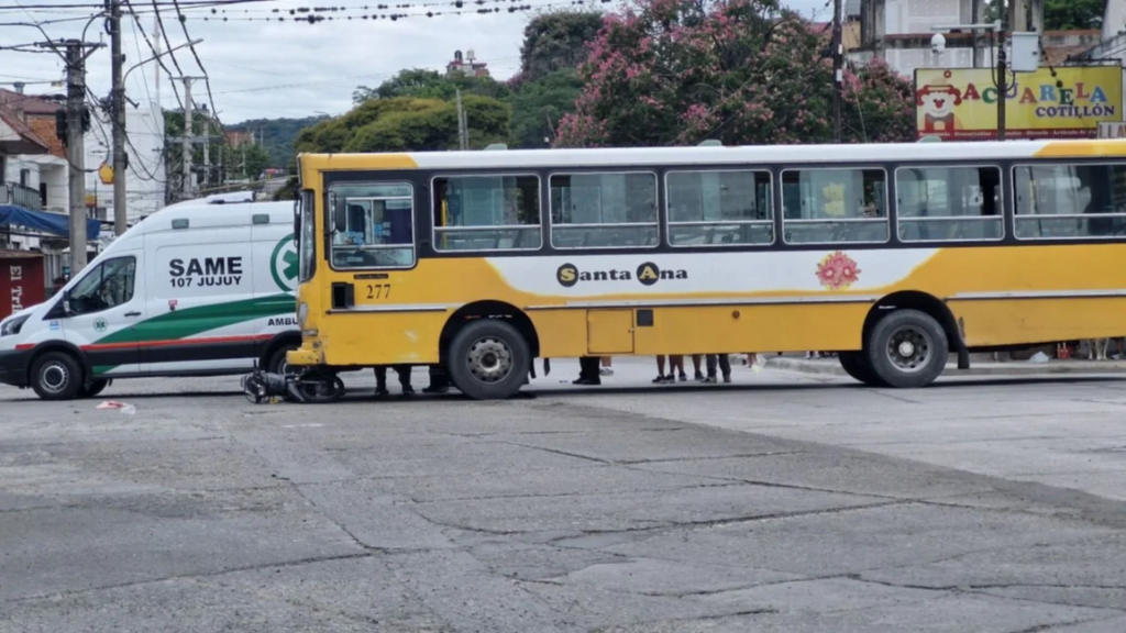 Dos personas resultaron heridas tras la colisión entre un colectivo y una moto en la esquina de las calles José de la Iglesia y Dorrego, de la capital jujeña. Ambas fueron trasladadas al hospital «Pablo Soria», donde quedaron internadas.