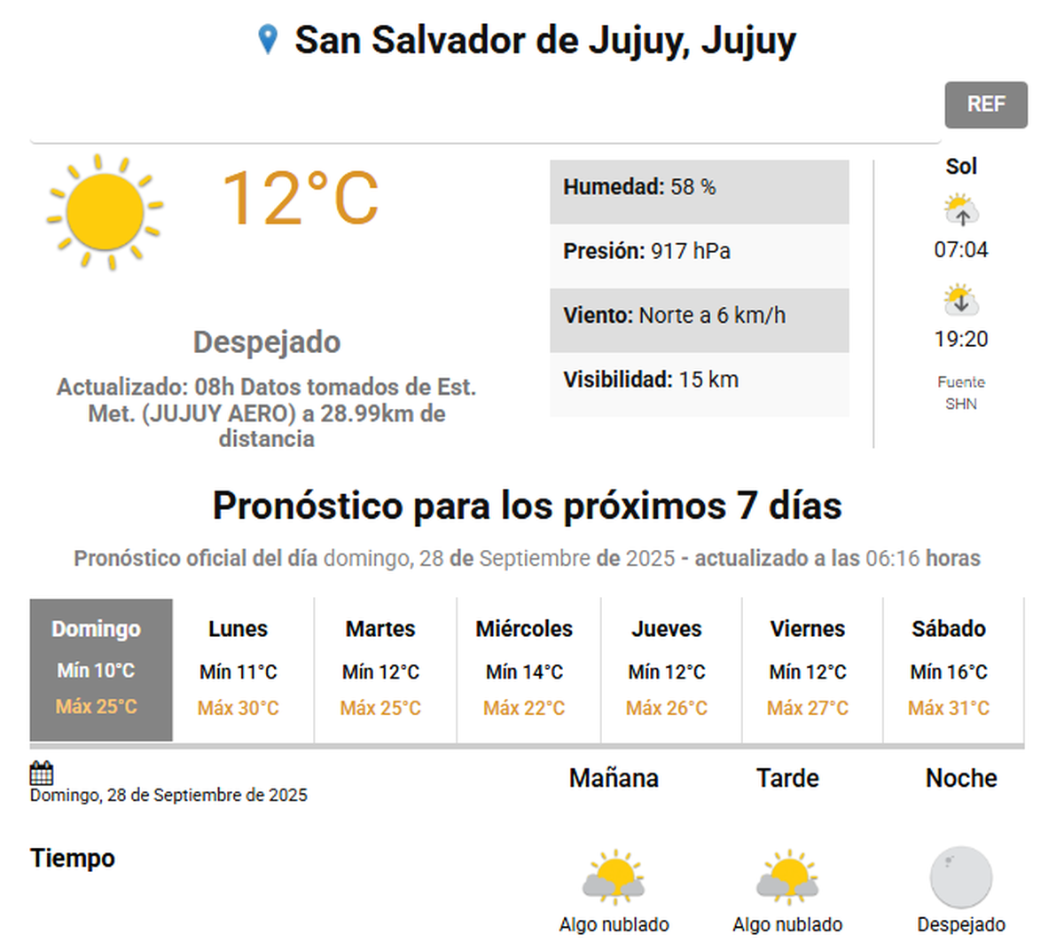Este domingo amaneció agradable en la capital provincial y zonas cercanas. Se espera una máxima de 25°C con cielo algo nublado.