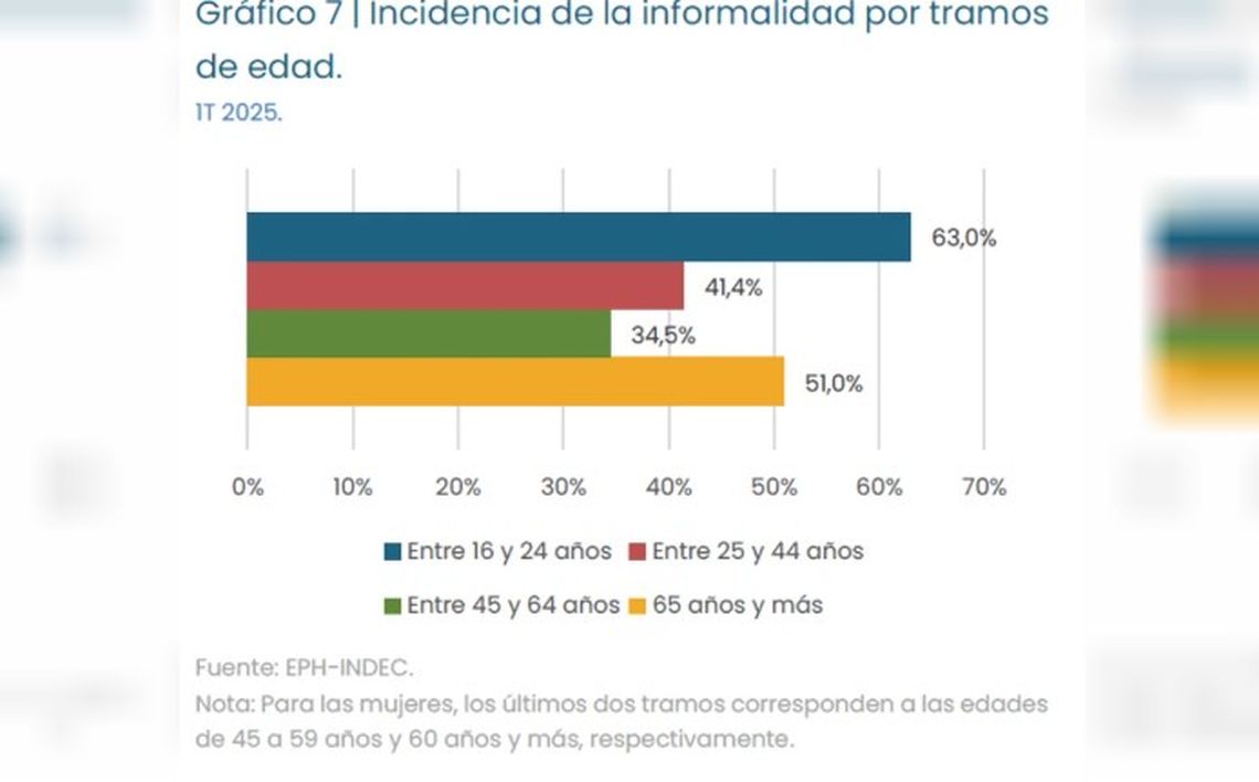 Es decir, 6 de cada 10 trabajadores con edad entre 16 y 24 años son informales. «Esta elevada proporción es una de las variadas manifestaciones de las dificultades que este grupo etario experimenta en el mercado de trabajo argentino», sostuvo el informe.