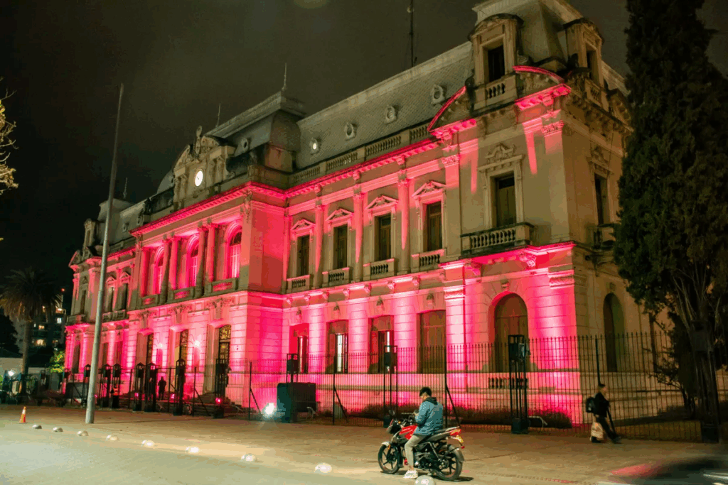 Con motivo de conmemorarse el 19 de octubre, el Día Mundial De La Lucha Contra El Cáncer De Mama, el poder ejecutivo iluminó de color rosa la fachada de Casa de Gobierno