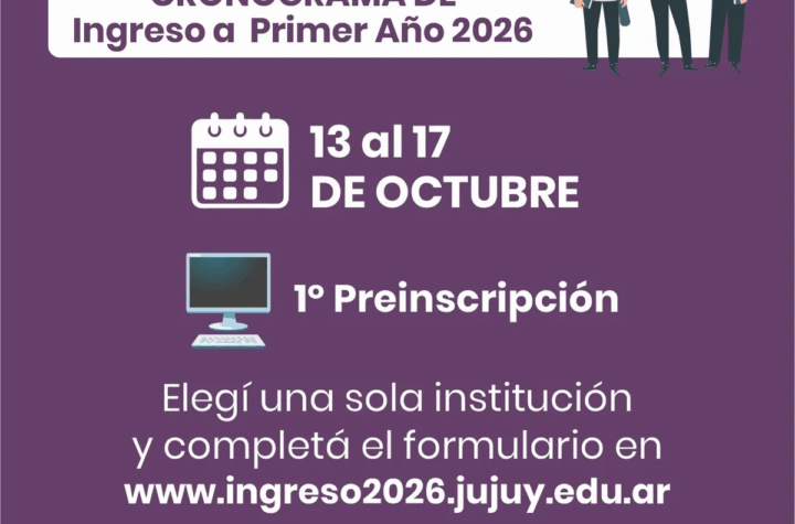 Del 13 al 17 de octubre se realiza la preinscripción para el ingreso a 1° año 2026