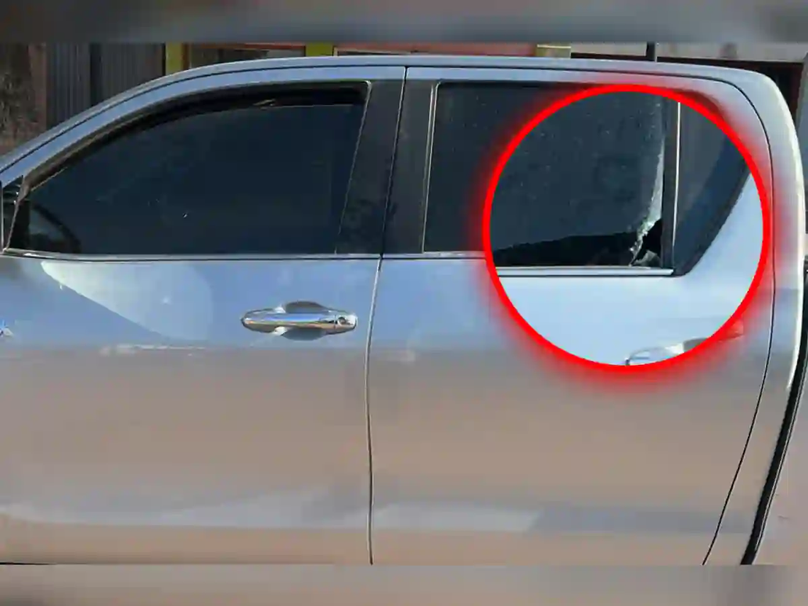 Según el acta, el conductor manifestó que se produjo un impacto de bala contra la ventana trasera izquierda, lo que provocó la rotura total del vidrio.
