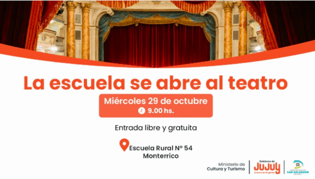 La función se realizará en la Escuela Rural N° 54 de Monterrico con entrada libre y gratuita, sin necesidad de reserva previa. Una oportunidad para que la comunidad educativa y el público en general disfruten del teatro en un espacio no convencional.