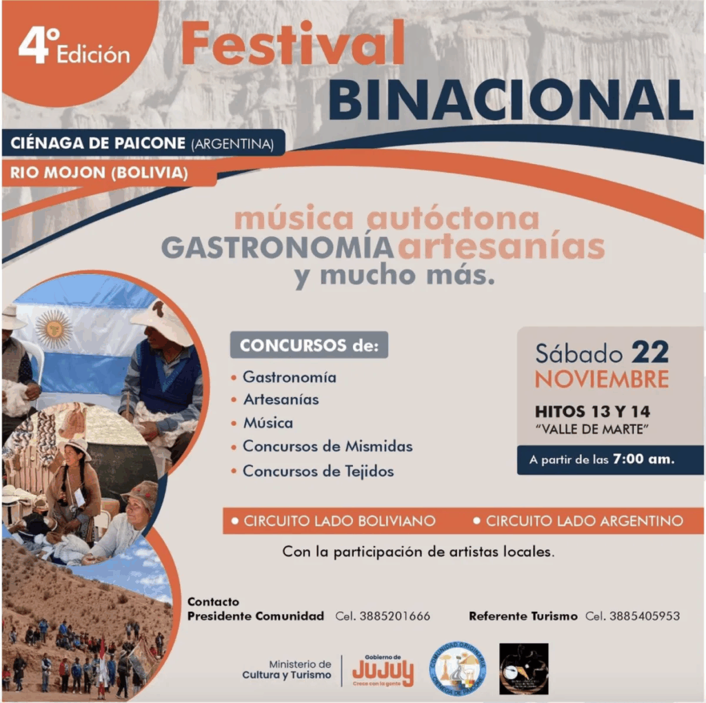 El festival propone un intercambio cultural entre ambos países con concursos de gastronomía, artesanías, música, tejidos y mismidas. La jornada incluye circuitos en el lado boliviano y argentino, con la participación de artistas locales que muestran las tradiciones de la región fronteriza.
