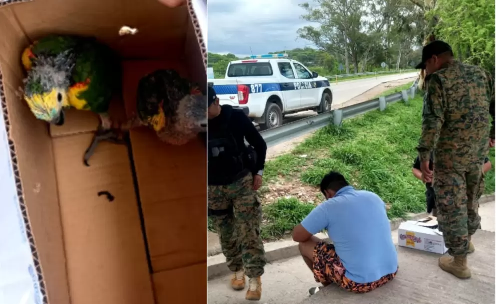 A partir de información recabada, los efectivos establecieron un punto de encuentro en la localidad de Los Alisos, donde se constató fehacientemente la transacción. En el lugar, se identificó a un masculino, identificado con las iniciales J.A., domiciliado en esa localidad, quien transportaba tres loros en el interior de una caja de cartón.