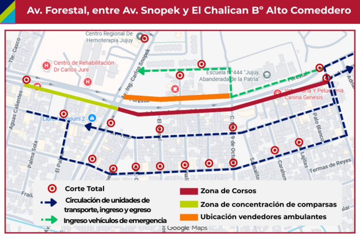 Sábado 7 y domingo 8: modificaciones en el recorrido del transporte de pasajeros en Av. Forestal por los Corsos Capitalinos