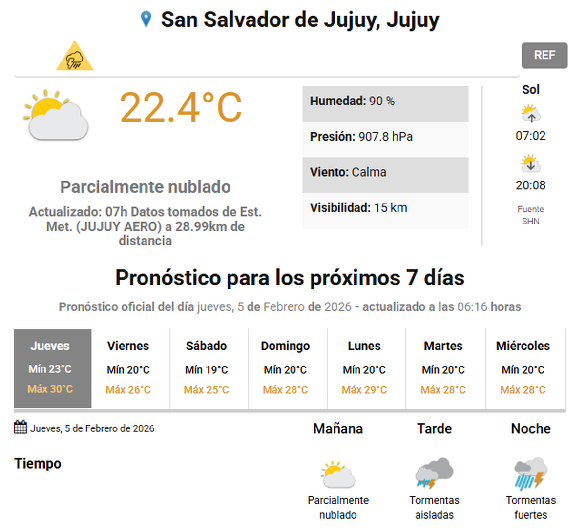 Para la capital jujeña se espera una máxima de 30°C con lluvias hacia el cierre de la jornada.