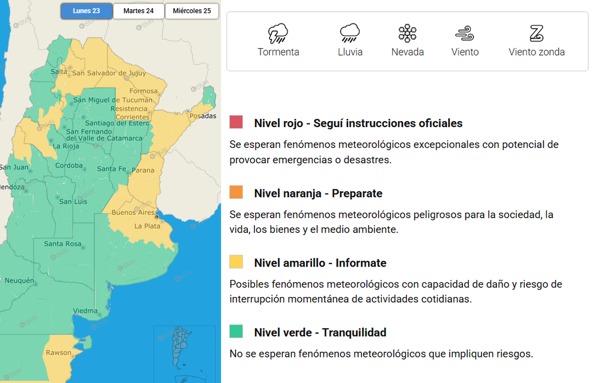 La misma rige para tarde y noche de este lunes y se extendería hasta el martes, alcanzando a Valles, Yungas y Quebrada.