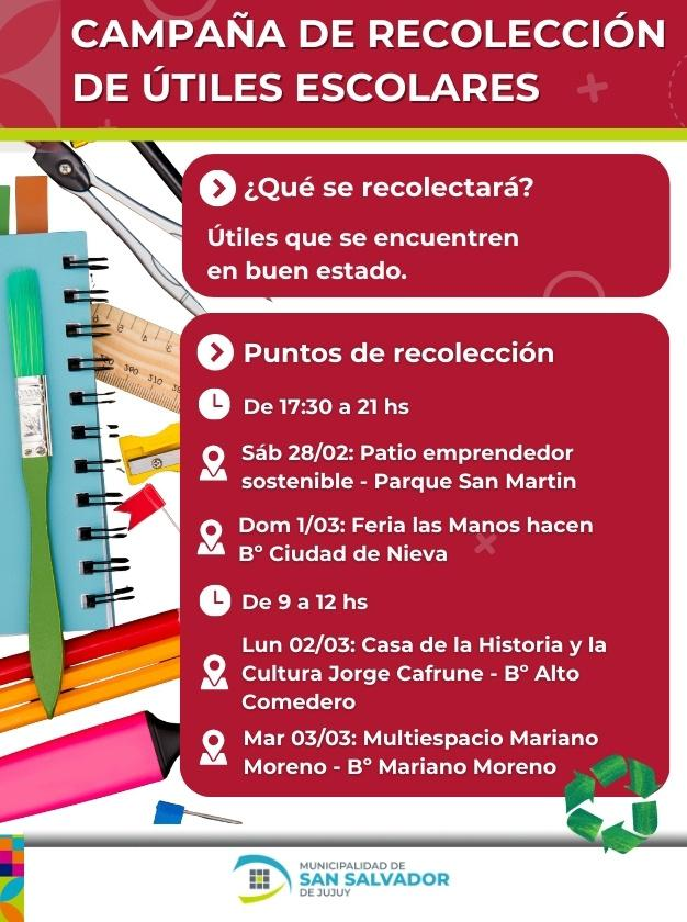 Desde el municipio invitan a la comunidad a revisar en casa y acercar aquellos útiles que aún puedan tener una nueva oportunidad. Cada cuaderno, lápiz o carpeta puede marcar una diferencia en el comienzo de clases de muchos estudiantes.