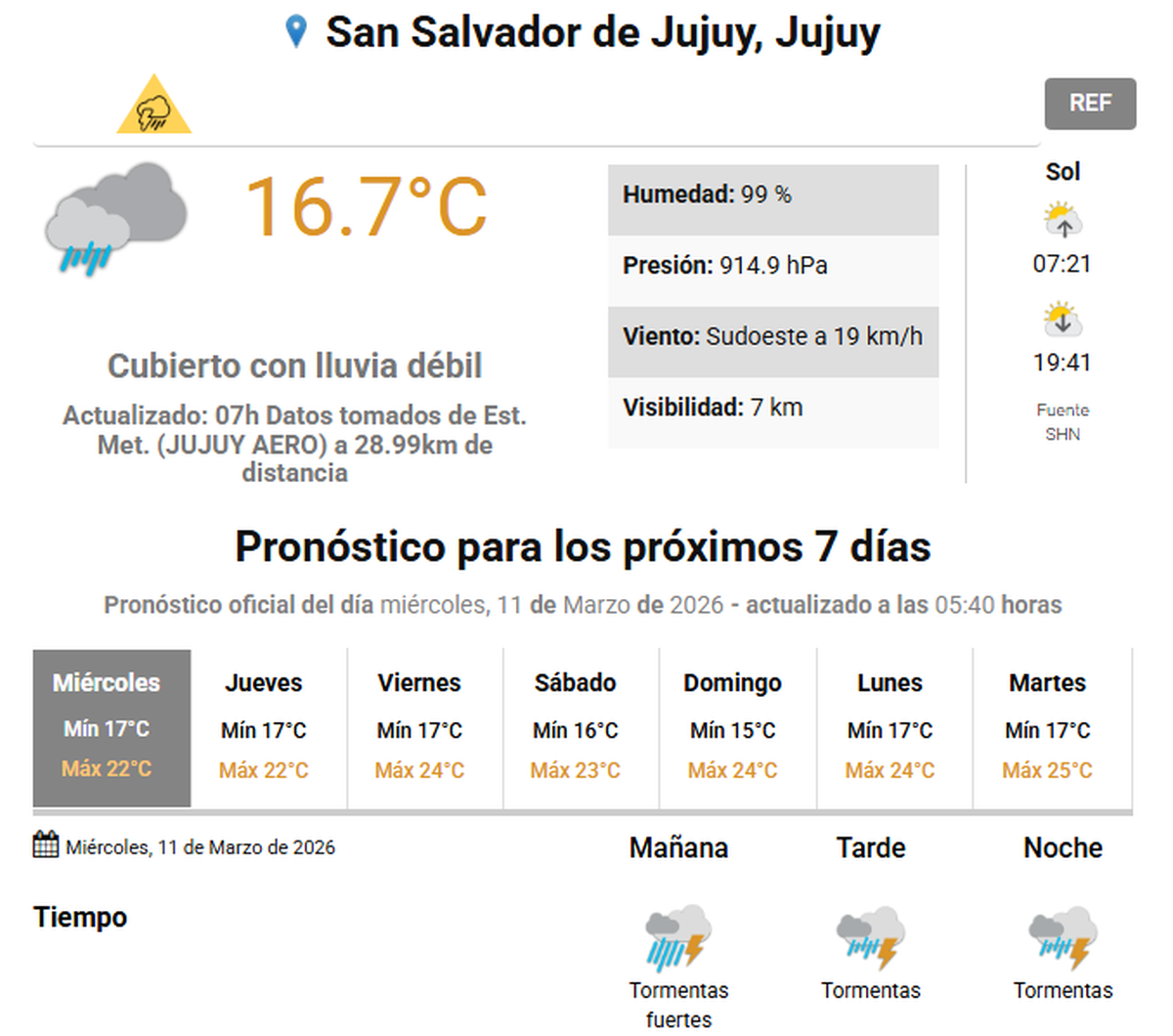 El Servicio Meteorológico Nacional (SMN) renovó la alerta amarilla por tormentas en Jujuy.