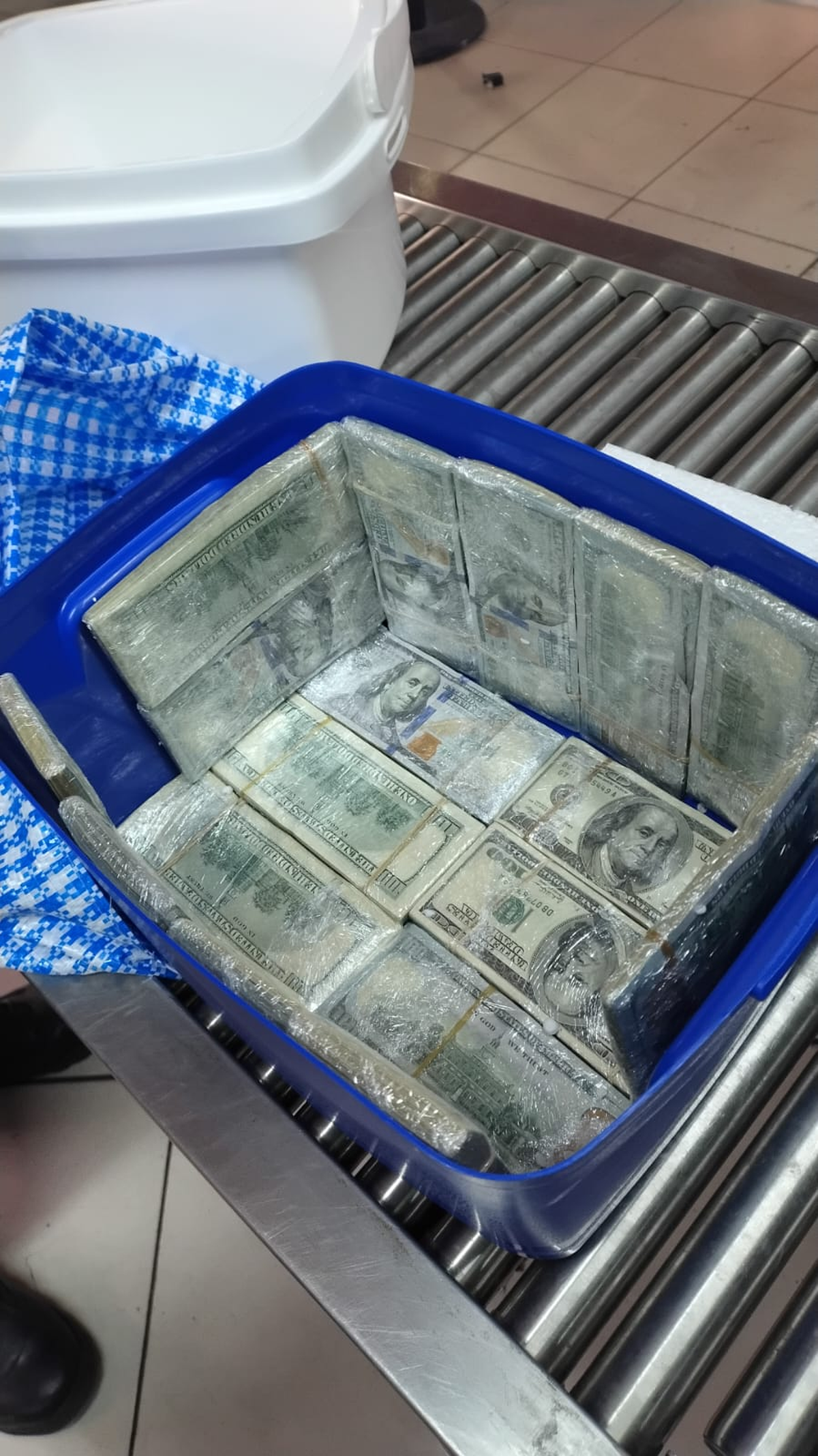 Al proceder a su apertura, encontraron divisas extranjeras (dólares estadounidenses) ocultas entre bebidas. Tras el conteo ordenado por la Justicia, se confirmó un total de 175.700 dólares.