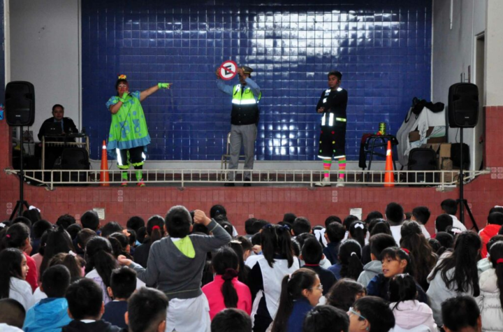 Los divertidos personajes, el Payaso París, Florcita y Semáforo, de la Dirección de Tránsito y Transporte dependiente de la Secretaría...