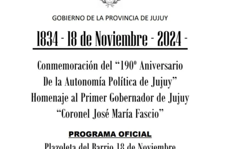 El Gobierno Provincial dio a conocer el programa del acto central en Conmemoración al 190° Aniversario de la Autonomía Política...