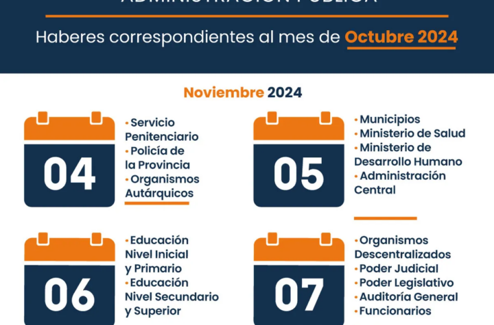 Tesorería de la Provincia anunció el cronograma de pago correspondiente al mes de octubre de 2024. El lunes 4 de...