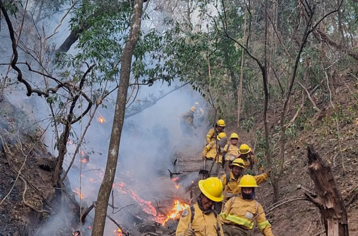 Los equipos especializados en el combate de los incendios de vegetación, del ministerio de Ambiente y Cambio Climático, trabajan en...