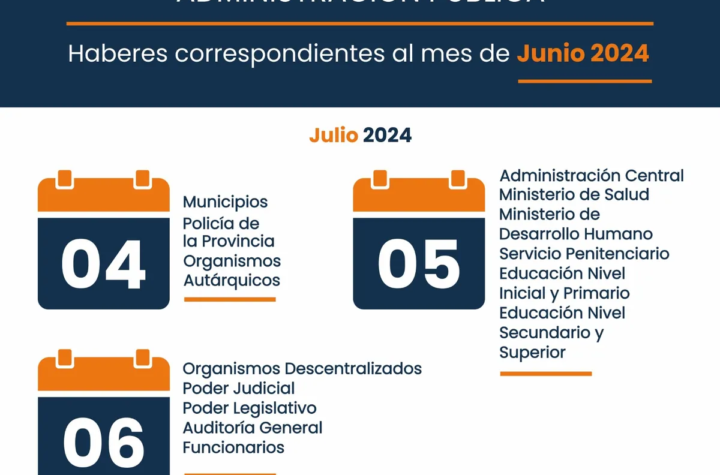 Tesorería de la Provincia anunció el cronograma de pagos, correspondiente al mes de Junio del 2024. El jueves 4 de julio percibirán haberes...