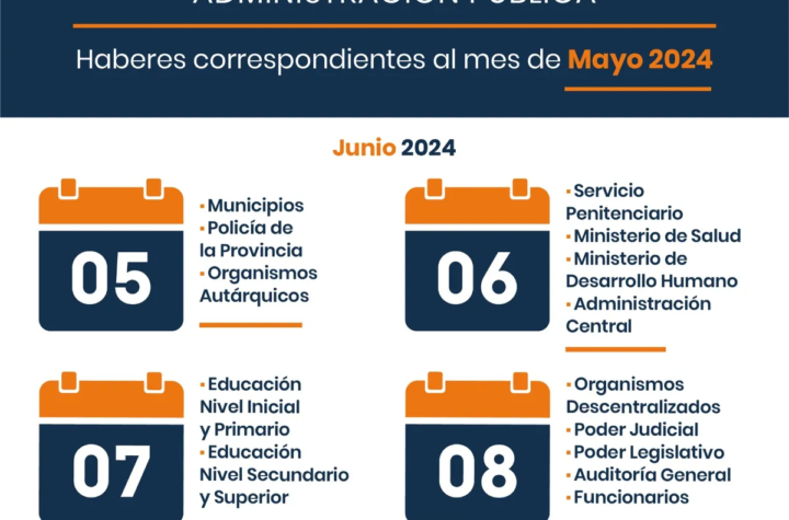 Tesorería de la Provincia anunció el cronograma de pagos, correspondiente al mes de mayo del 2024. El miércoles 5 de junio percibirán haberes...