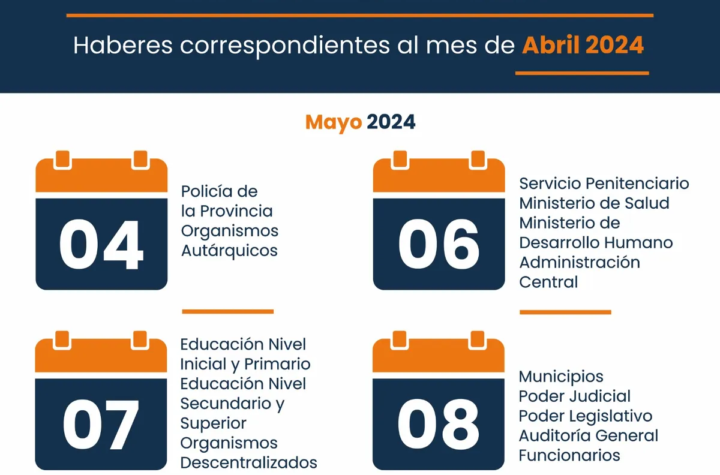 Tesorería de la Provincia anunció el cronograma de pagos, correspondiente al mes de abril de 2024. El sábado 4 de mayo percibirán haberes,...