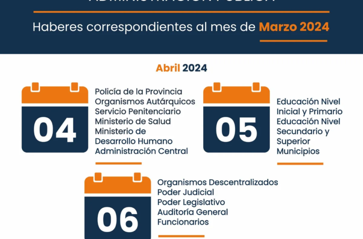 Tesorería de la Provincia anunció el cronograma de pagos, correspondiente al mes de marzo de 2024. El jueves 4 de abril percibirán...