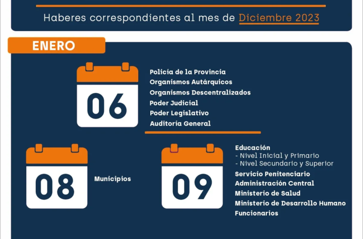 Tesorería de la Provincia anunció el cronograma de pagos, correspondiente al mes de diciembre de 2023. El jueves 5 de enero percibirán...