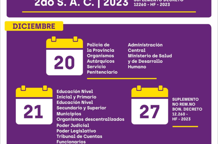 Tesorería de la Provincia dio a conocer el cronograma de pagos correspondiente 2do S.A.C del 2023. El mismo comienza el...