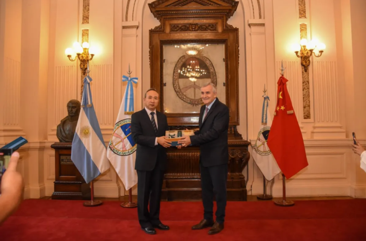 El gobernador de Jujuy, Gerardo Morales, recibió en el Salón de la Bandera de la Casa de Gobierno al embajador...