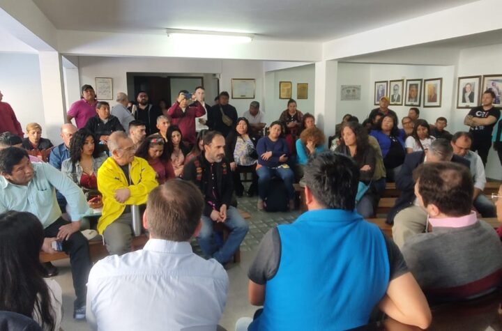 El interventor del Partido Justicialista Seccional Jujuy, Aníbal Fernández junto a la candidata a Senadora Carolina Moisés y el resto...