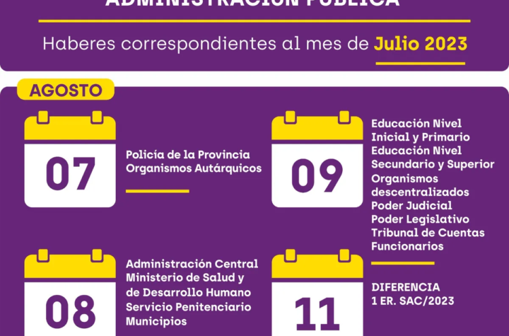 Tesorería de la Provincia dio a conocer el cronograma de pagos, correspondiente al mes de julio del 2023. El lunes 7...