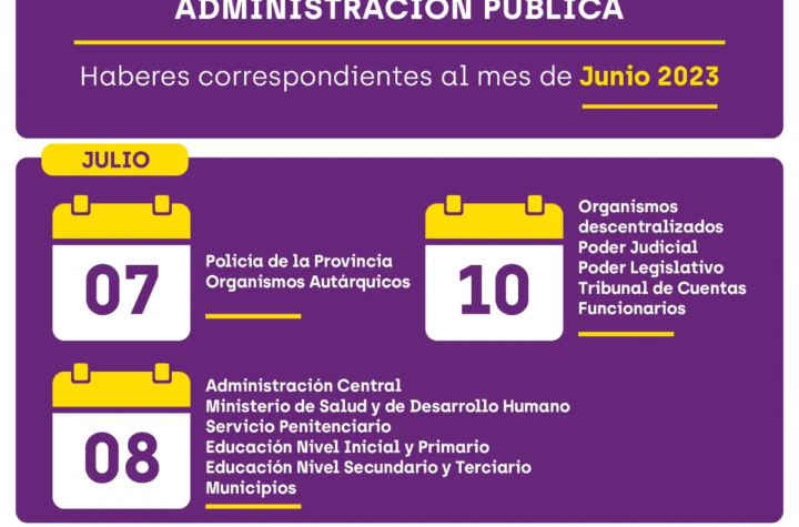 Tesorería de la Provincia dio a conocer el cronograma de pagos, correspondiente al mes de junio del 2023. El viernes 7...